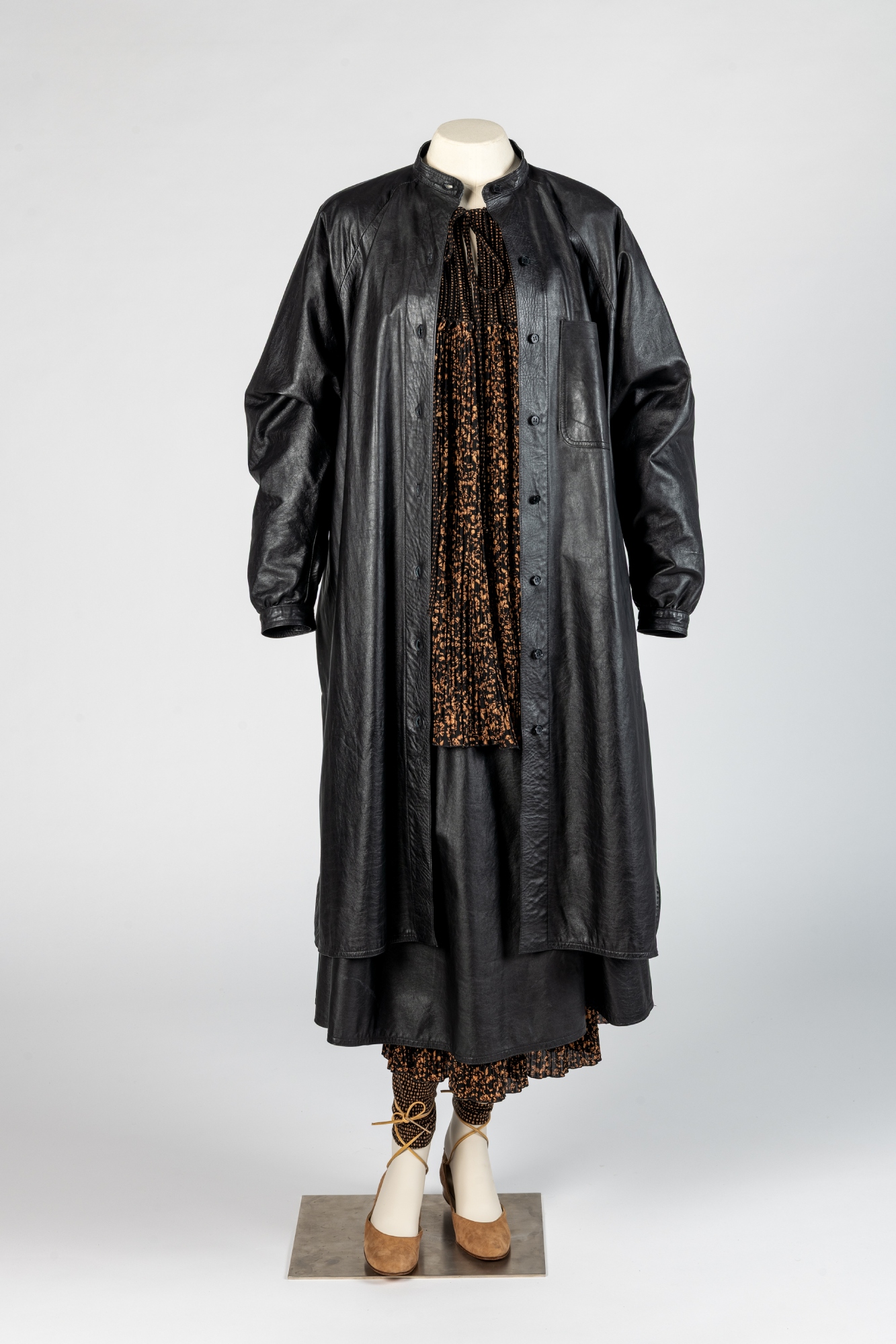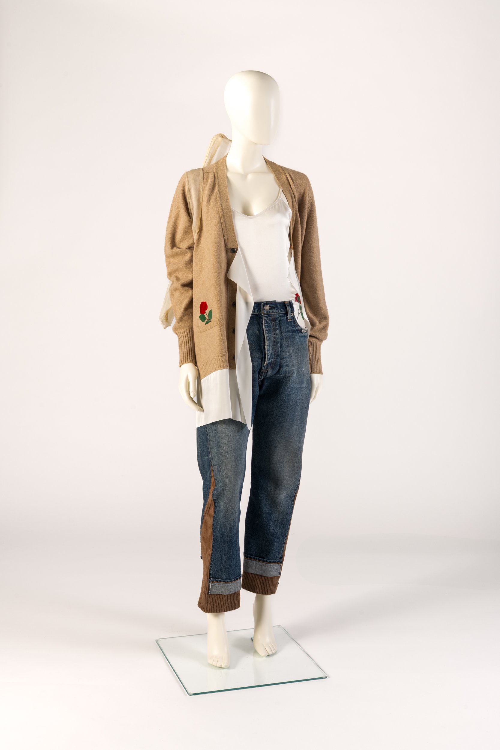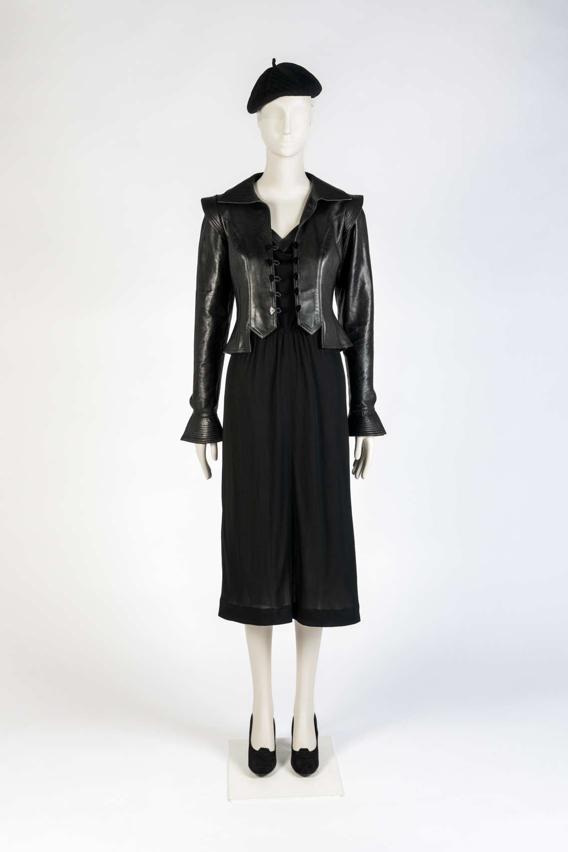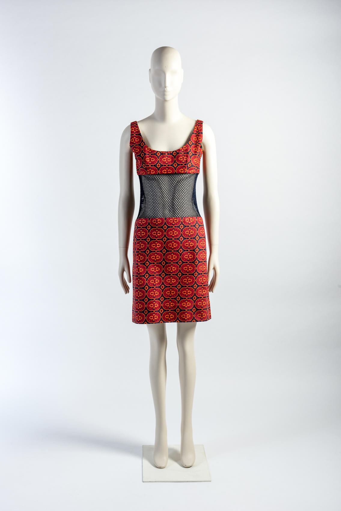 2017 Dior Tshirt, jacket & skirt; 2010 Vivienne Westwood silk dress;1972 Biba red dress & boots; 2023 Bianca Saunders printed men’s suit; 1984 Bodymap striped ensemble; 1985 Scott Crolla men’s velvet & brocade outfit; 2000 Versace green silk dress
