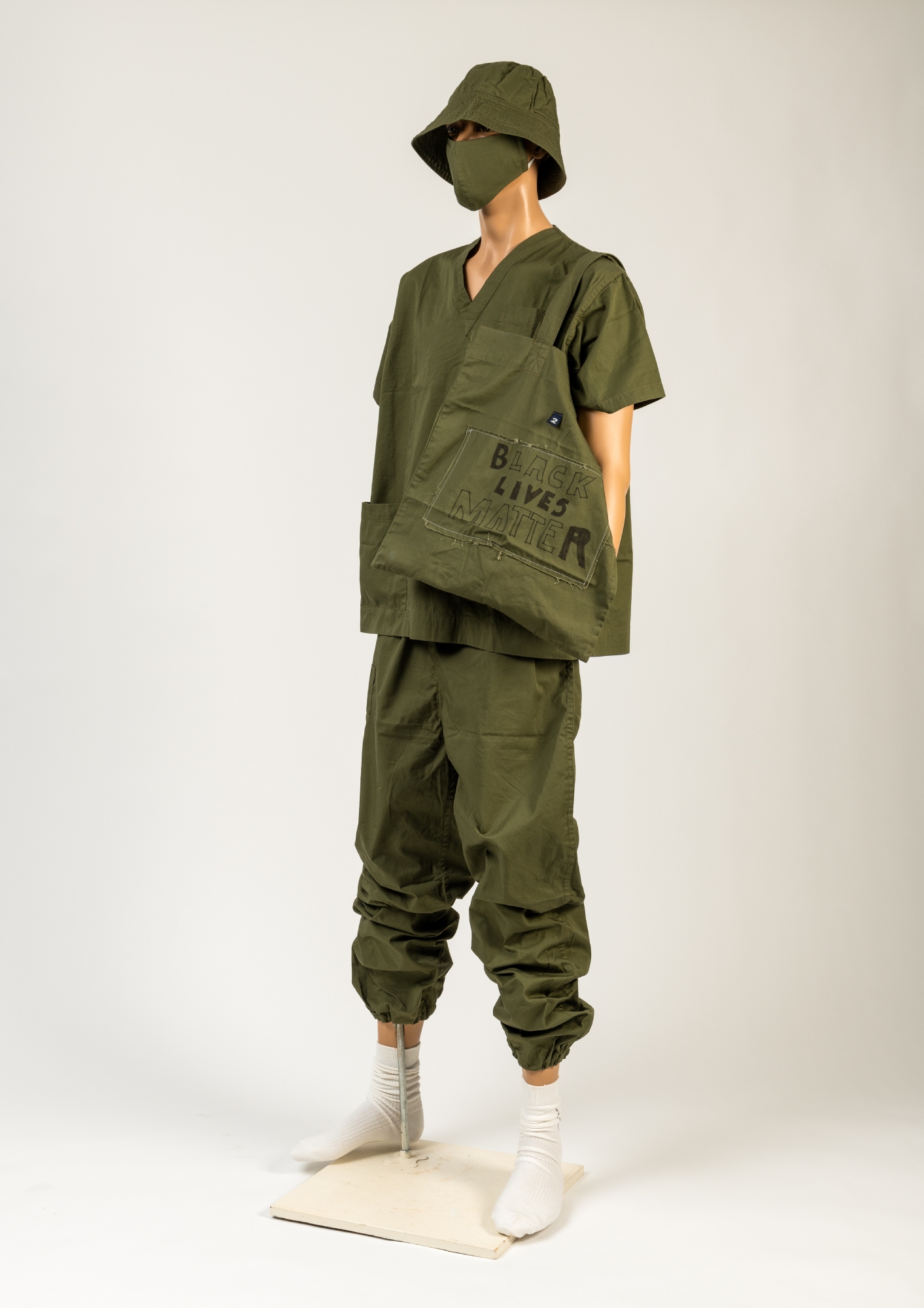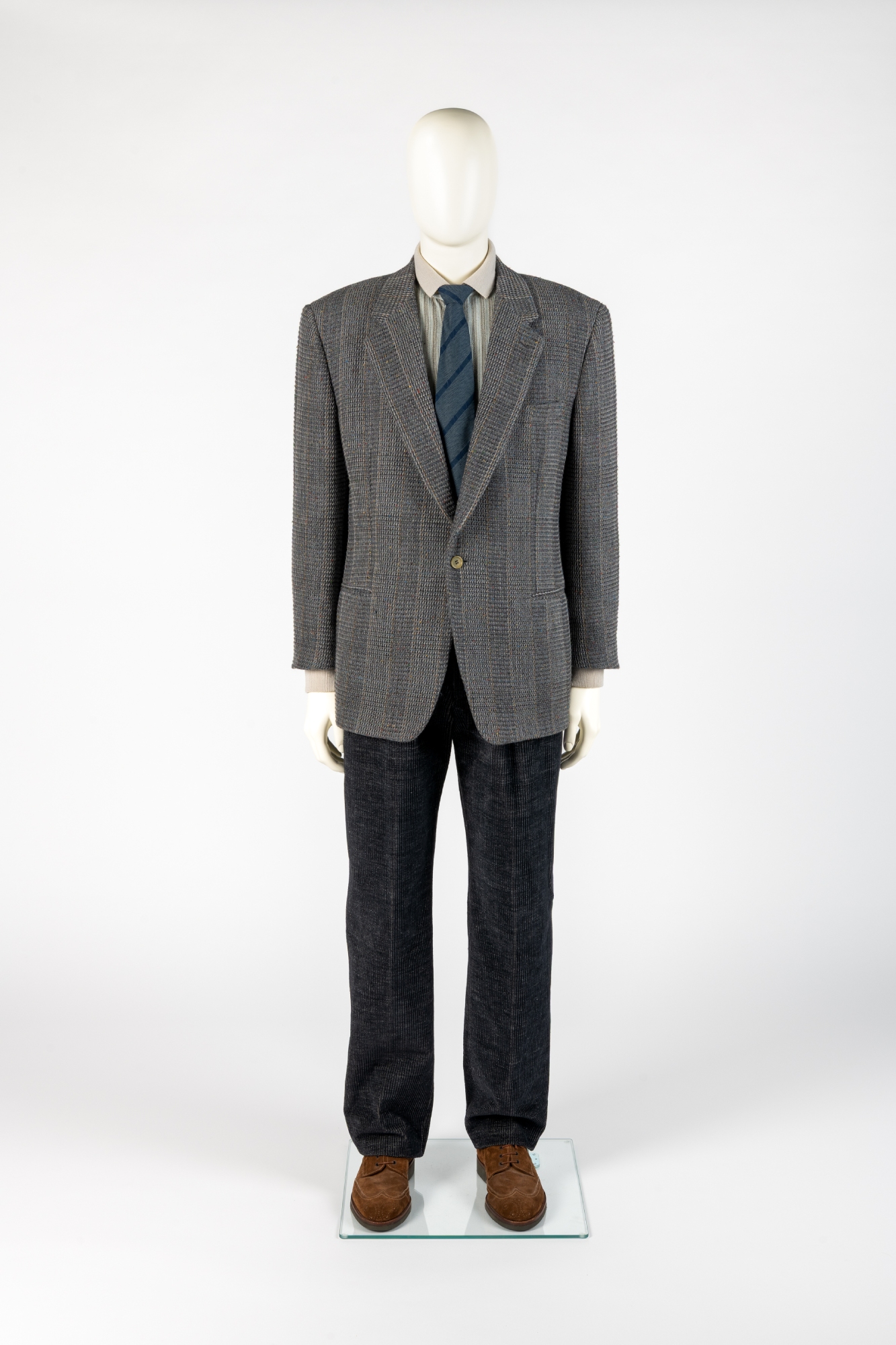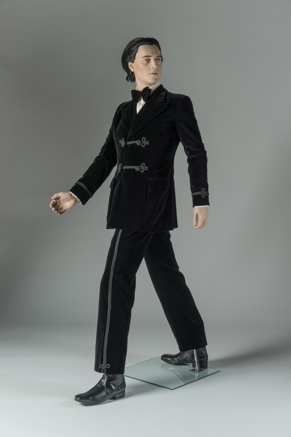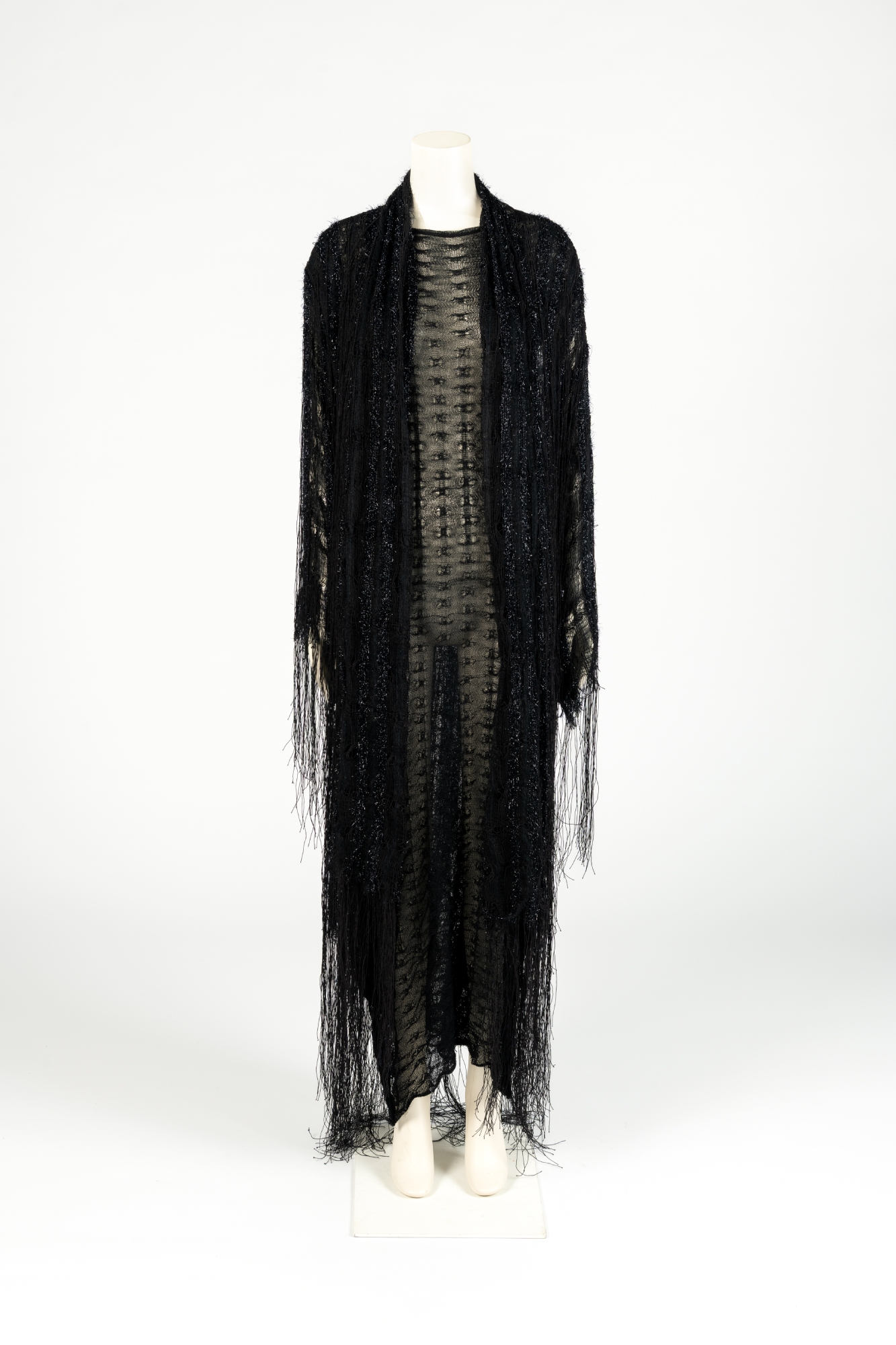 2017 Dior Tshirt, jacket & skirt; 2010 Vivienne Westwood silk dress;1972 Biba red dress & boots; 2023 Bianca Saunders printed men’s suit; 1984 Bodymap striped ensemble; 1985 Scott Crolla men’s velvet & brocade outfit; 2000 Versace green silk dress